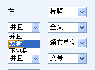 在每一個檢索字段條件下,都可以選擇一次邏輯組配,包括:并且、或者、不包括。其中,在“頒布時間”中包括有:不指定、并且、不包括。