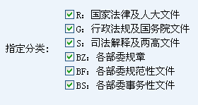 提供有:國家法律及人大文件、行政法規及國務院文件、司法解釋及兩高文件、各部委規章、各部委規范性文件、各部委事務性文件,而且支持多項選擇檢索。
